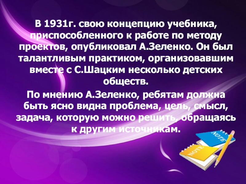 Слайд 10В 1931г. свою концепцию учебника, приспособленного к работе по методу проектов,