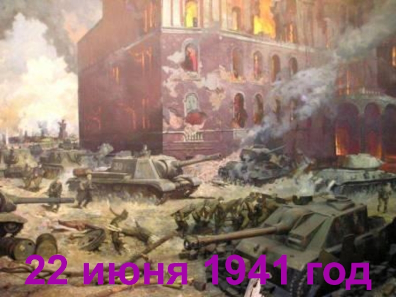Слайд 222 июня 1941 года началась Великая отечественная война. Весь народ поднялся