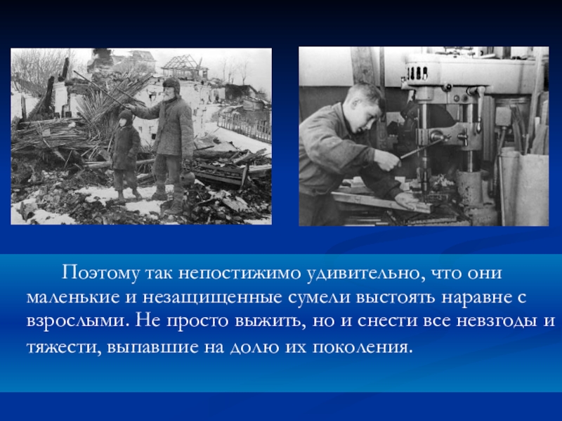 наравне с взрослыми. Не просто выжить, но и снести все невзгоды и тяжести, выпавшие на долю их поколения.