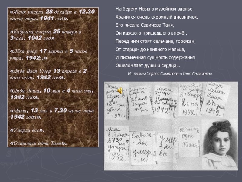 Из поэмы Сергея Смирнова «Таня Савичева»