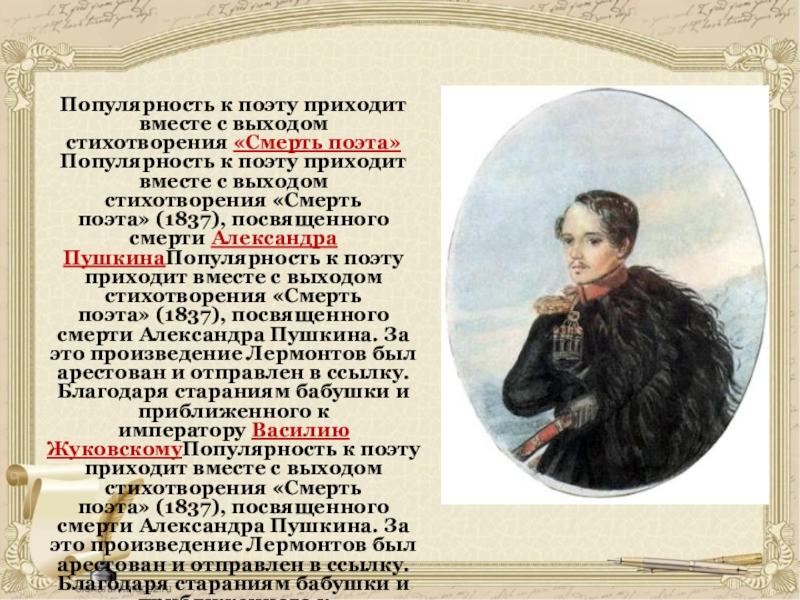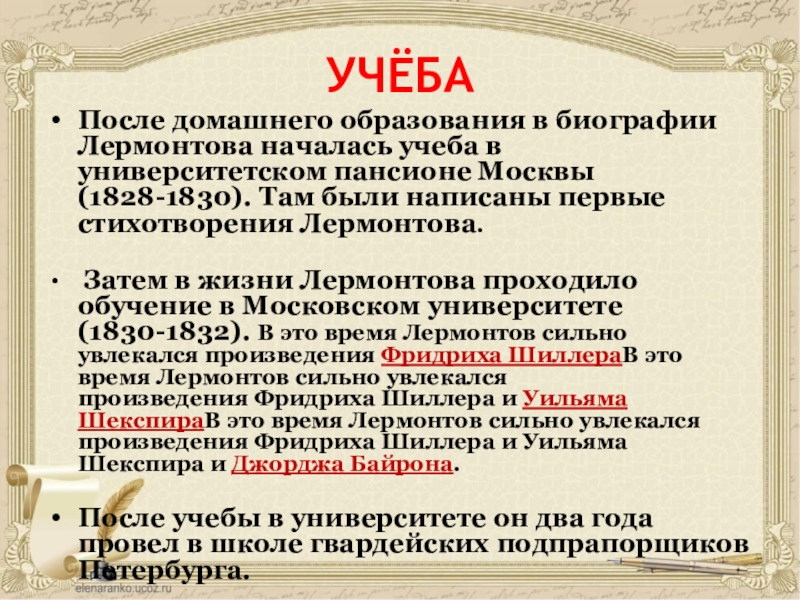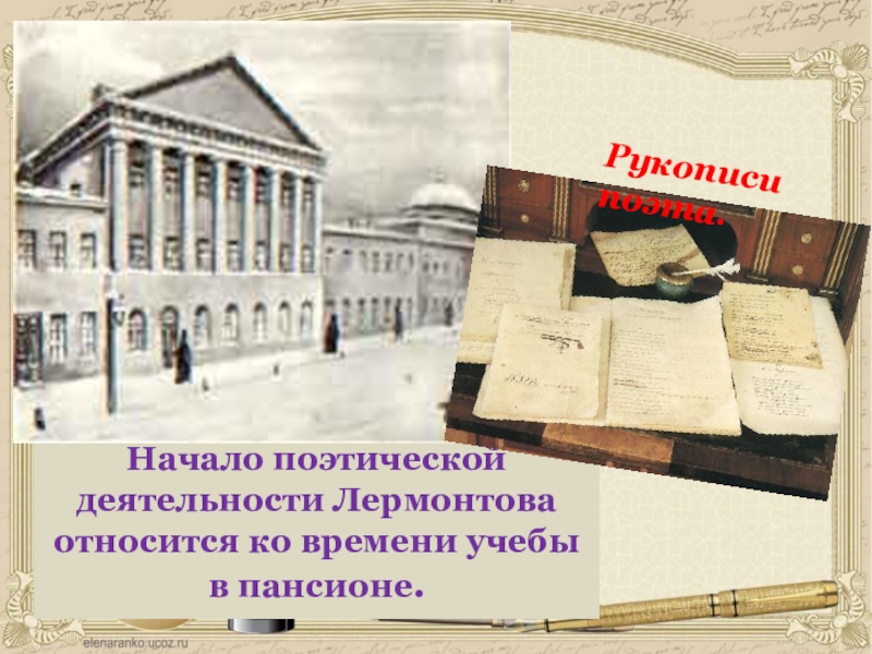 В 1830 году Лермонтов подает прошение в Правление Императорского Московского университета о продолжении учения в нем. Этот документ и сейчас лежит на столе.