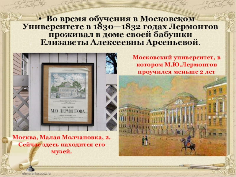 Московский университет, в котором М.Ю.Лермонтов проучился меньше 2 лет