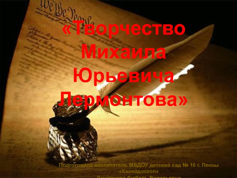 «Творчество Михаила Юрьевича Лермонтова»Подготовила воспитатель МБДОУ детский сад № 10 г. Пензы «Калейдоскоп» Дмитриева Любовь Валерьевна