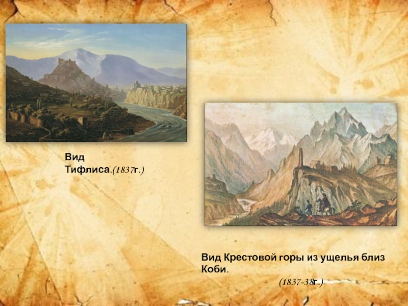 Вид Тифлиса.(1837г.)Вид Крестовой горы из ущелья близ Коби.(1837-38г.)