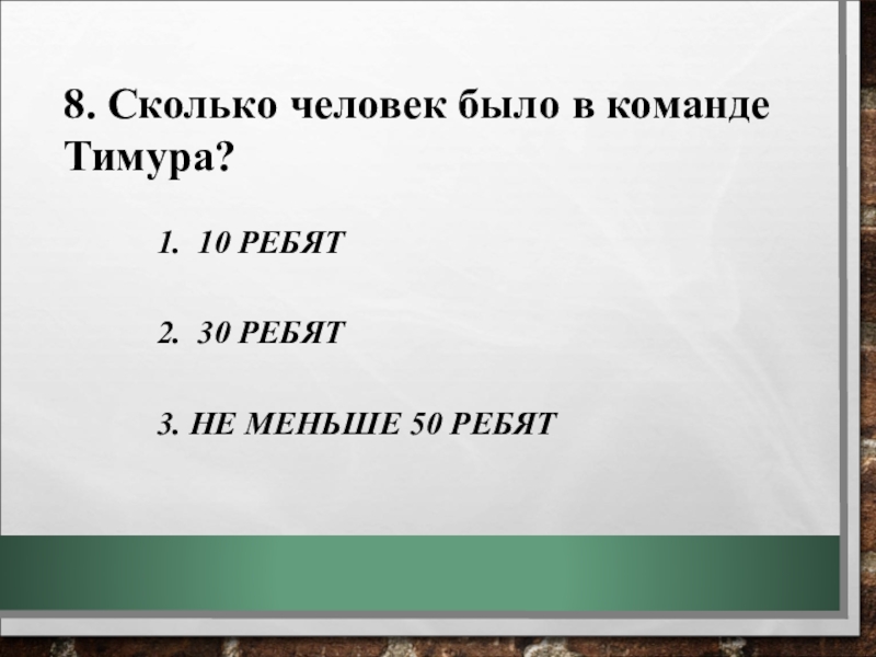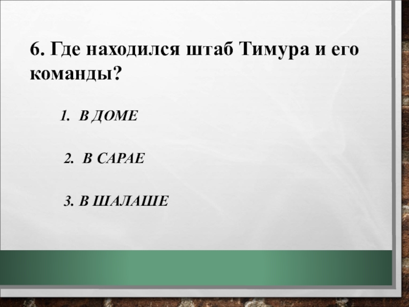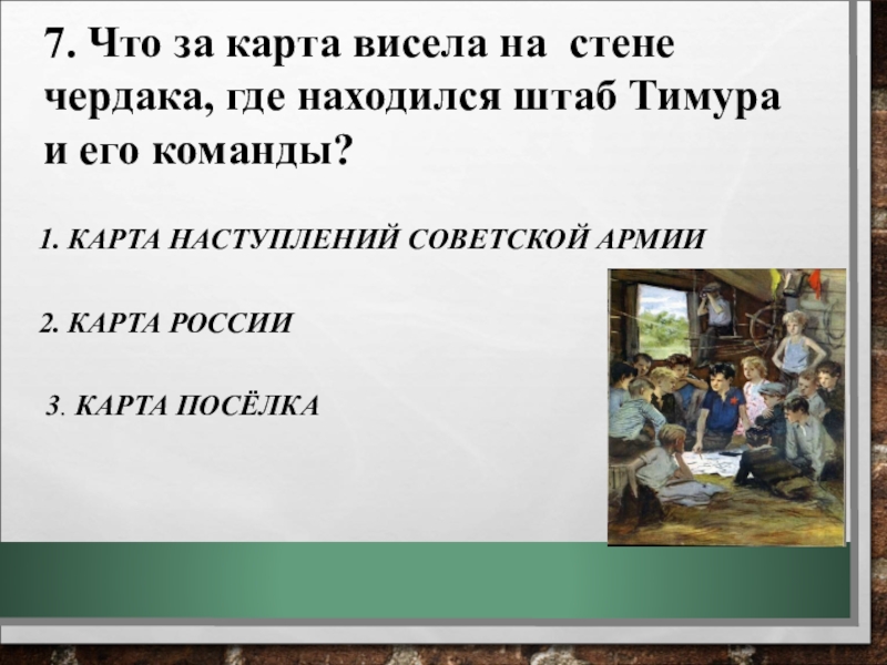 7. Что за карта висела на стене чердака, где находился штаб Тимура и его команды?