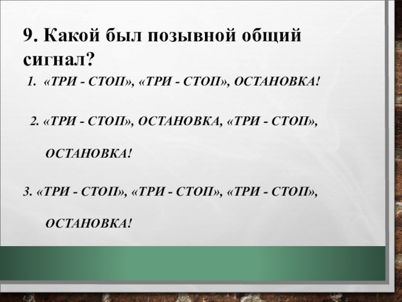 9. Какой был позывной общий сигнал?