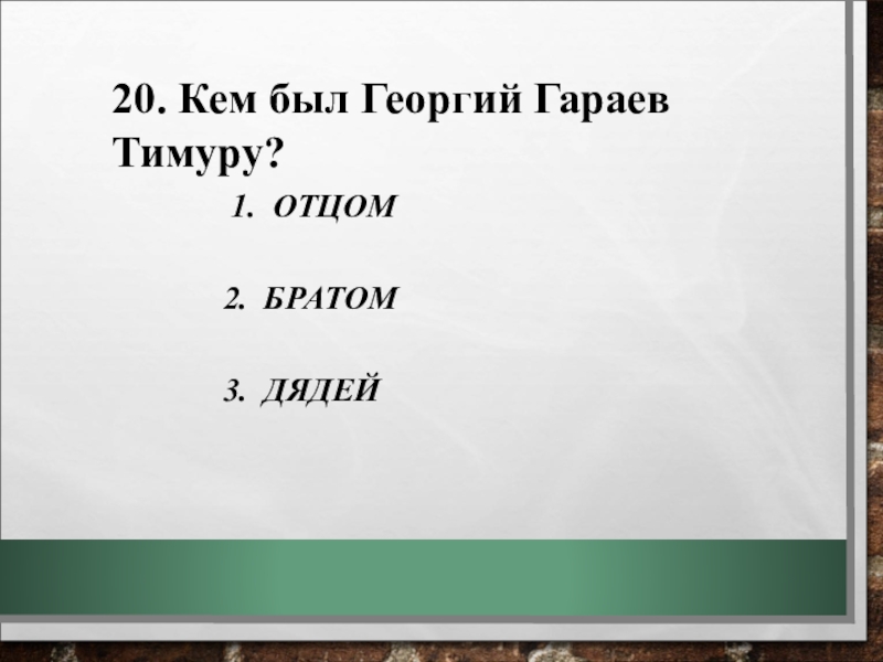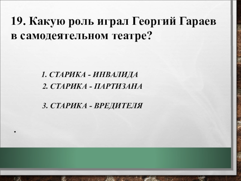 19. Какую роль играл Георгий Гараев