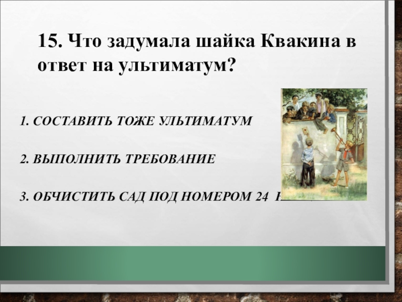 15. Что задумала шайка Квакина в ответ на ультиматум?