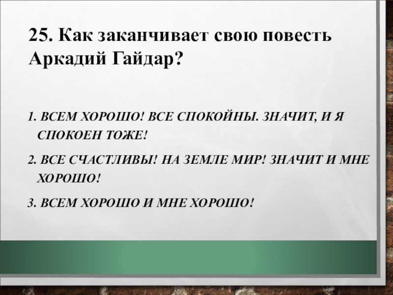25. Как заканчивает свою повесть Аркадий Гайдар?