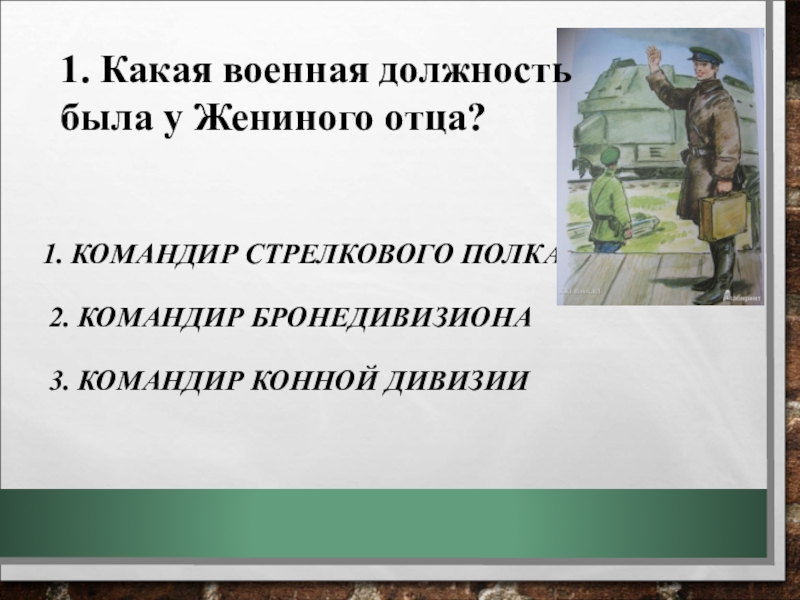 1. Какая военная должность была у Жениного отца?