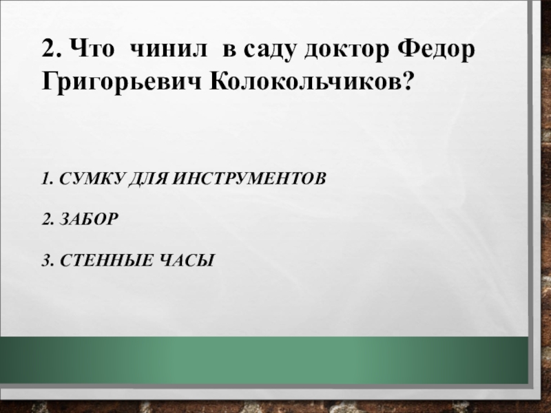 2. Что чинил в саду доктор Федор Григорьевич Колокольчиков?