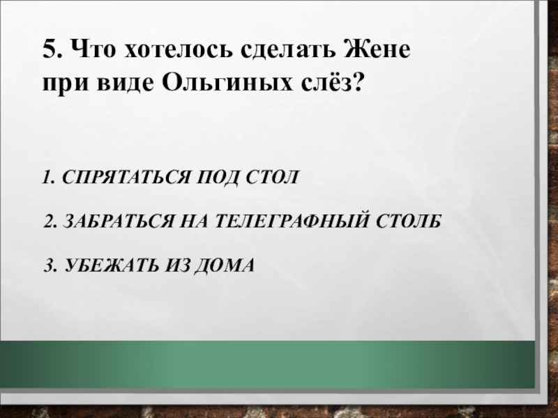 5. Что хотелось сделать Жене при виде Ольгиных слёз?