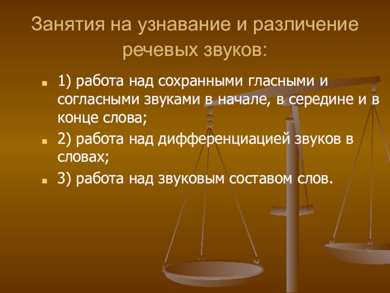 Слайд 8Занятия на узнавание и различение речевых звуков: