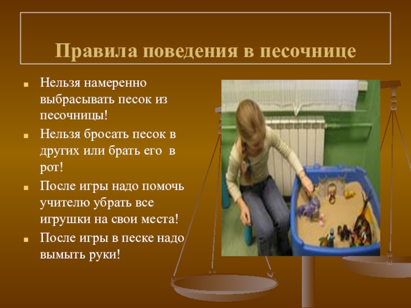 Также дети с помощью педагога обозначают для себя некоторые правила поведения в песочнице.