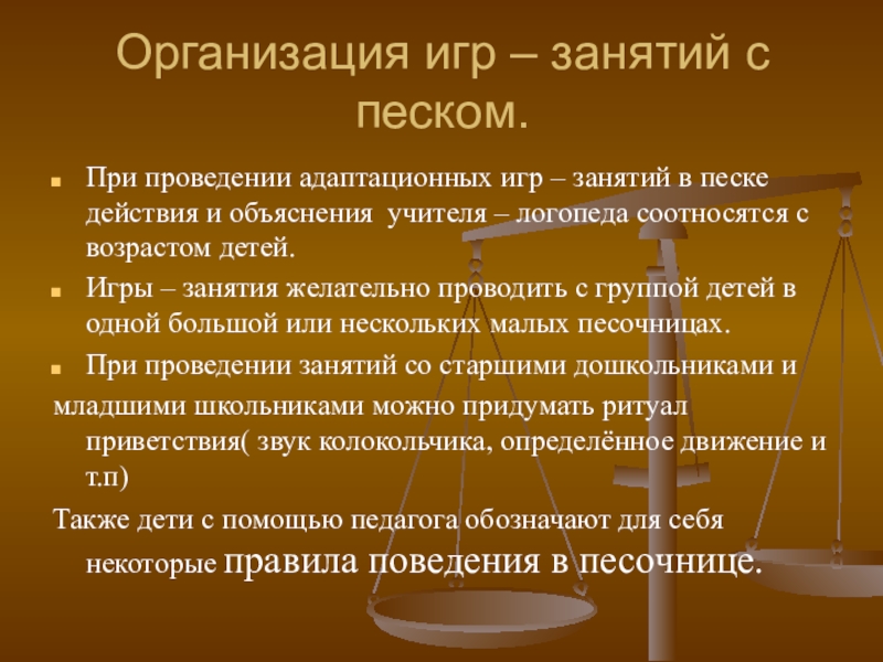 в песке действия и объяснения учителя – логопеда соотносятся с возрастом детей.