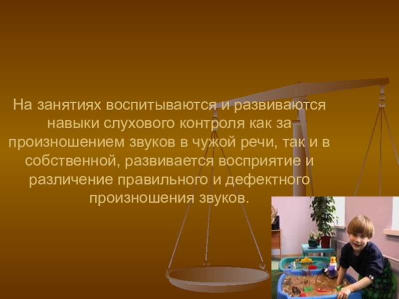 Слайд 9На занятиях воспитываются и развиваются навыки слухового контроля как за произношением
