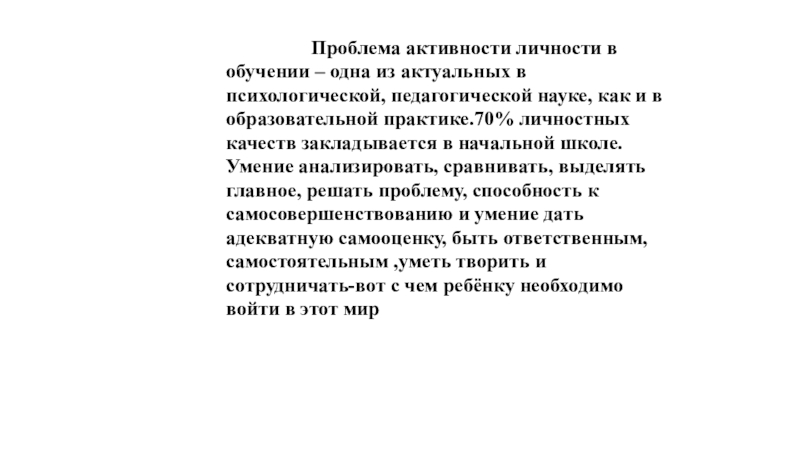 - творческая активность обучаемого предполагает устремление его к теоретическому осмыслению знаний, самостоятельному поиску решения проблем;