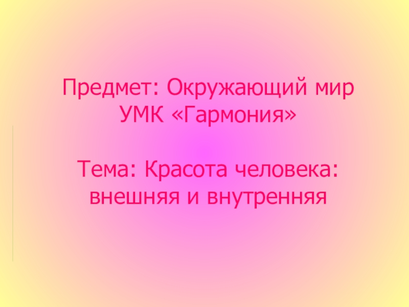Слайд 1Предмет: Окружающий мир УМК «Гармония» Тема: Красота человека: внешняя и внутренняя