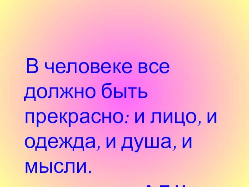 Слайд 10 В человеке все должно быть прекрасно: и лицо, и