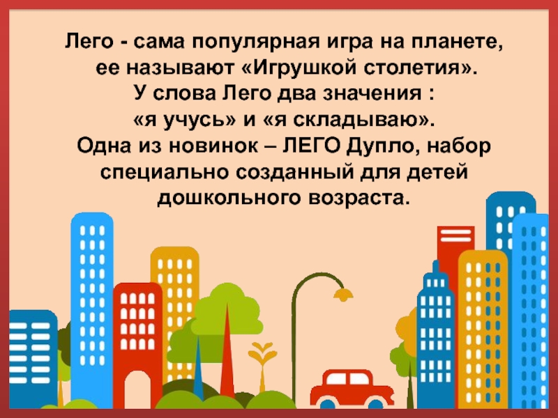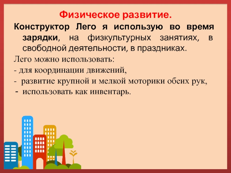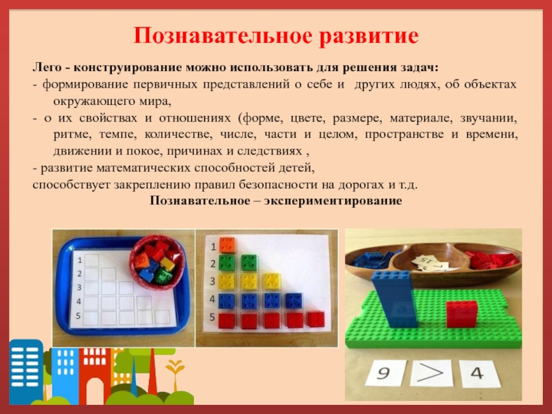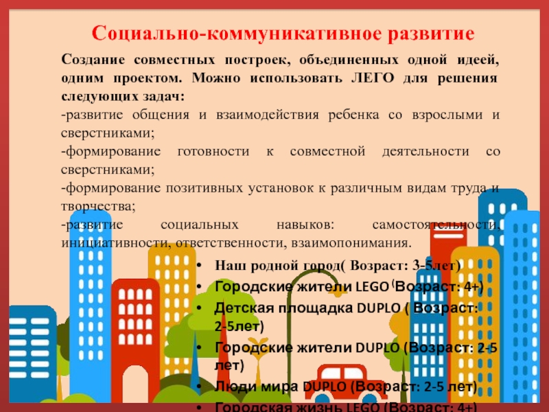 Создание совместных построек, объединенных одной идеей, одним проектом. Можно использовать ЛЕГО для решения следующих задач: