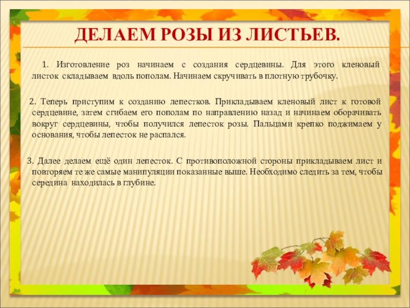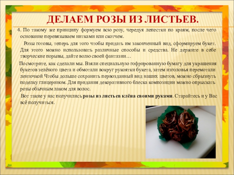 Вот такие у нас получились розы из листьев клёна своими руками. Старайтесь и у Вас всё получиться.