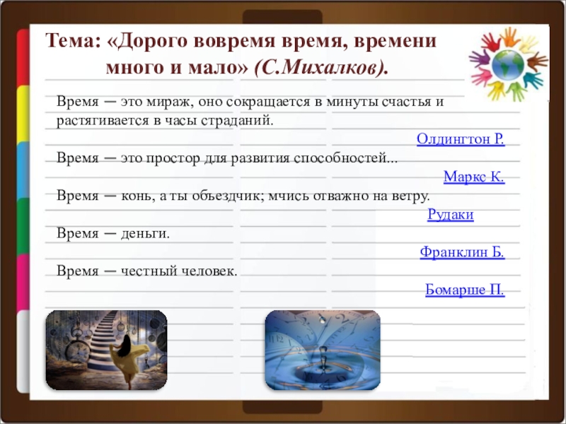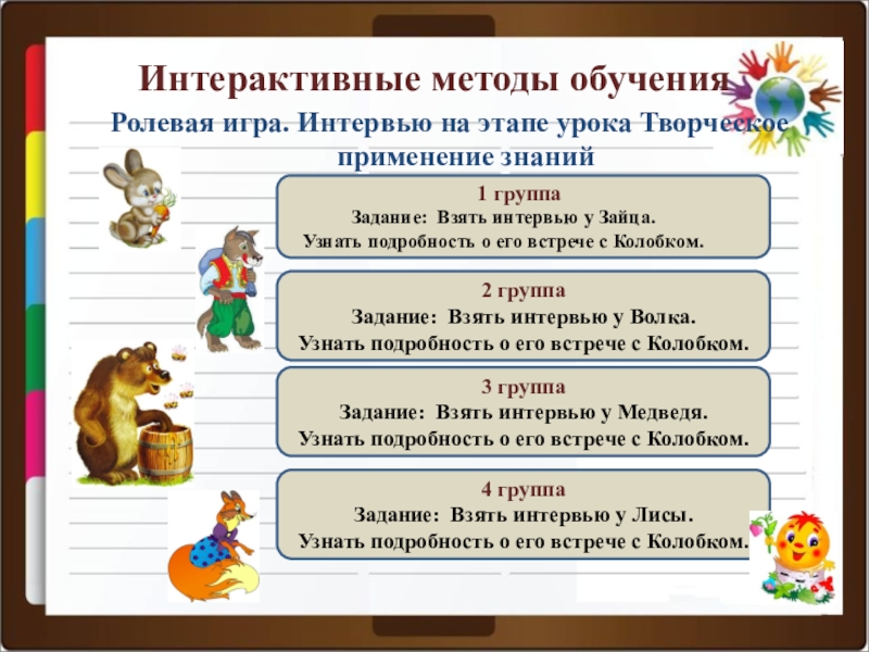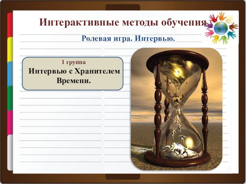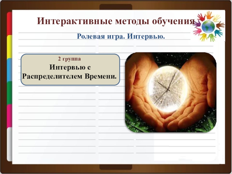 Задание: Распределить роли. На основе текста и своей фантазии журналистам придумать интересные вопросы и взять интервью у Распределителя Времени