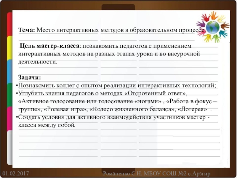 Терещенко Е.В.МОУ СОШ №2 с.Арзгир