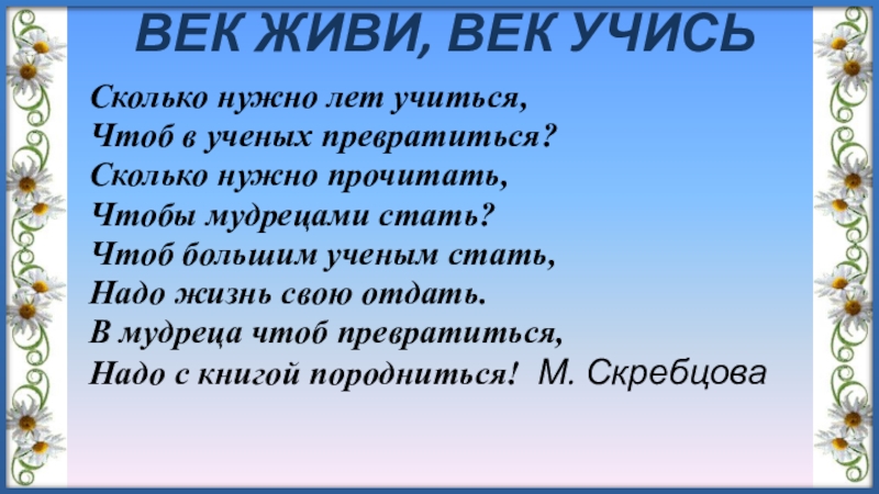 Слайд 13 ВЕК ЖИВИ, ВЕК УЧИСЬ