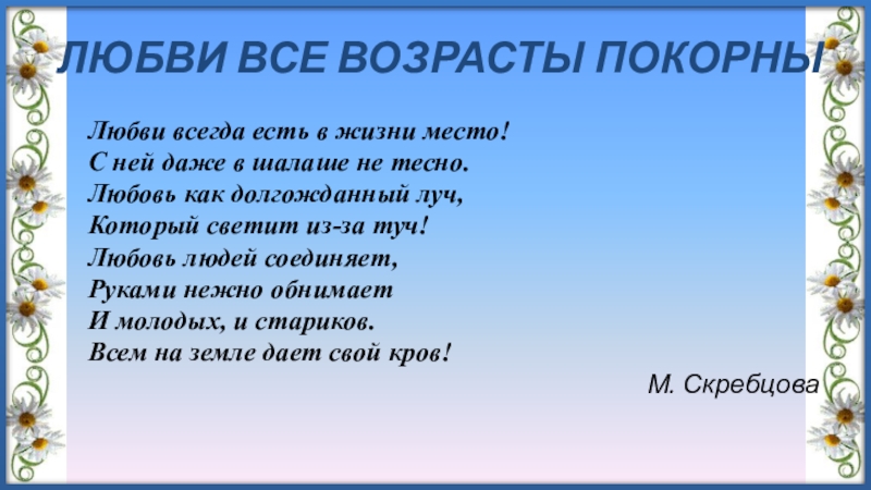 Слайд 6ЛЮБВИ ВСЕ ВОЗРАСТЫ ПОКОРНЫ