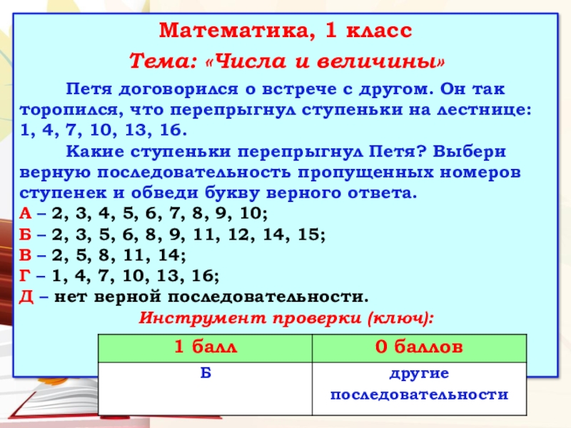 Какие ступеньки перепрыгнул Петя? Выбери верную последовательность пропущенных номеров ступенек и обведи букву верного ответа.