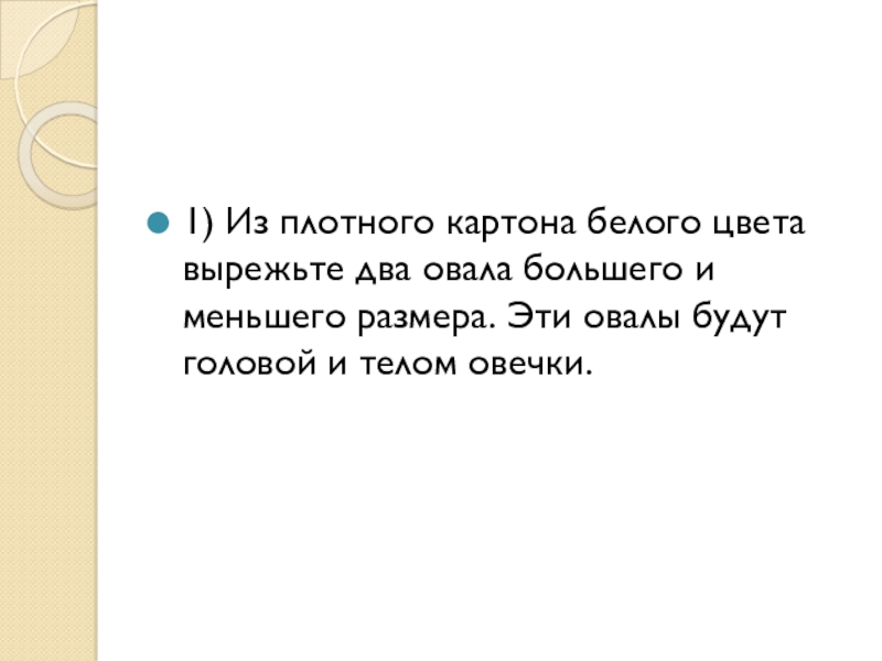Слайд 121) Из плотного картона белого цвета вырежьте два овала большего и