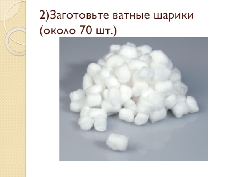 Слайд 202)Заготовьте ватные шарики (около 70 шт.)