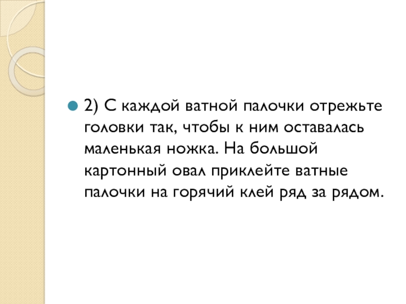 Слайд 132) С каждой ватной палочки отрежьте головки так, чтобы к ним