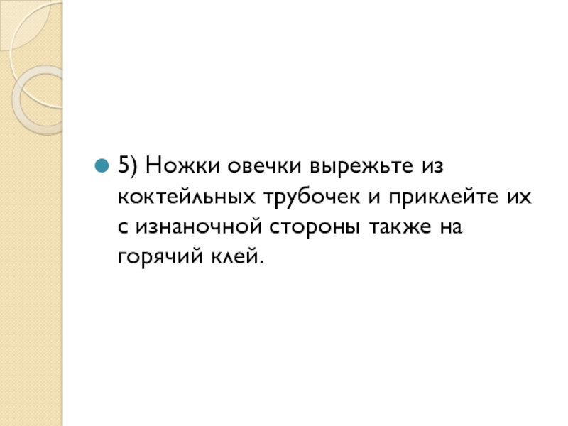 Слайд 165) Ножки овечки вырежьте из коктейльных трубочек и приклейте их с