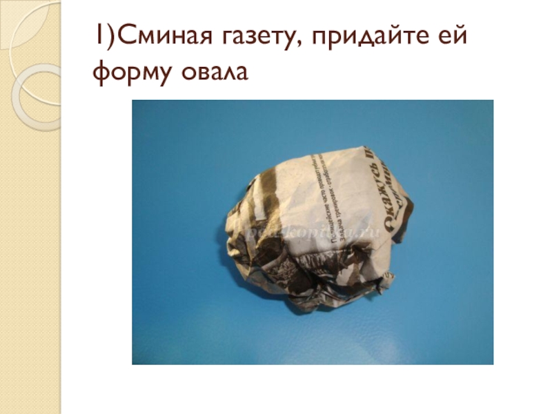 Слайд 191)Сминая газету, придайте ей форму овала