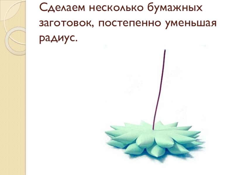 Слайд 9Сделаем несколько бумажных заготовок, постепенно уменьшая радиус.