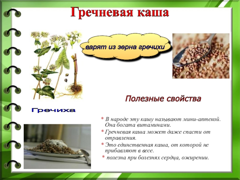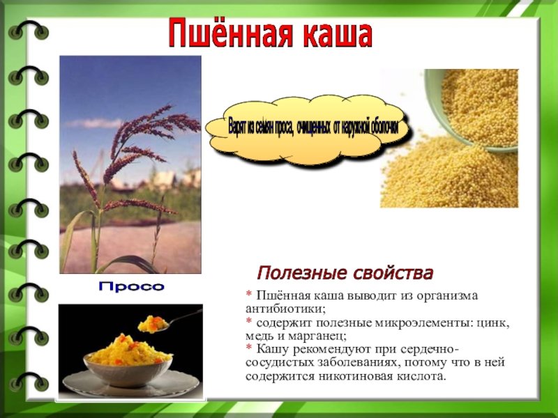 * Кашу рекомендуют при сердечно-сосудистых заболеваниях, потому что в ней содержится никотиновая кислота.