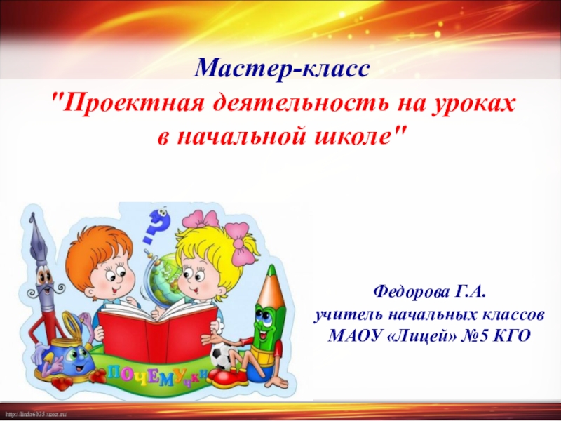 Презентация, доклад к мастер-классу Организация проектной деятельности на уроке в начальной школе