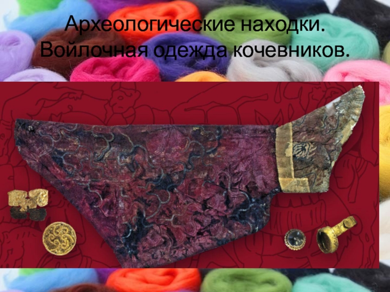 Слайд 3Археологические находки. Войлочная одежда кочевников.