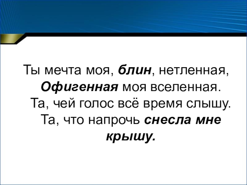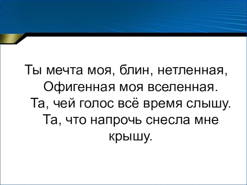 Ты мечта моя, блин, нетленная,
