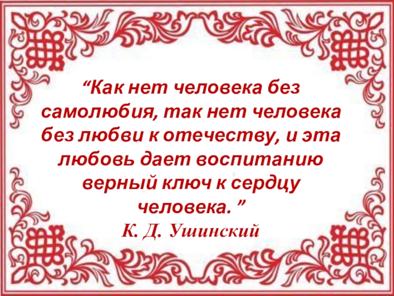 отечеству, и эта любовь дает воспитанию верный ключ к сердцу человека. ”