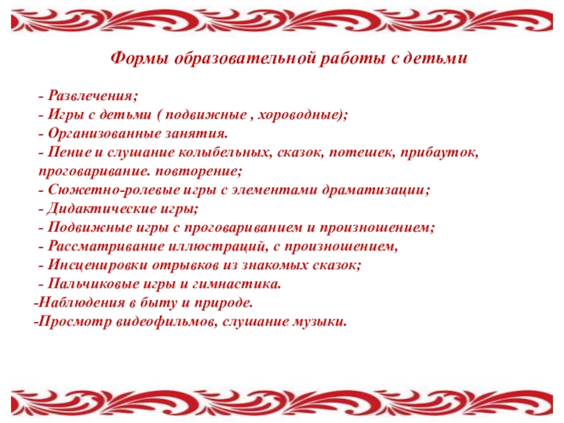 Слайд 11Формы образовательной работы с детьми
