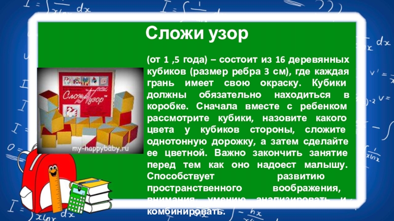 (от 1 ,5 года) – состоит из 16 деревянных кубиков