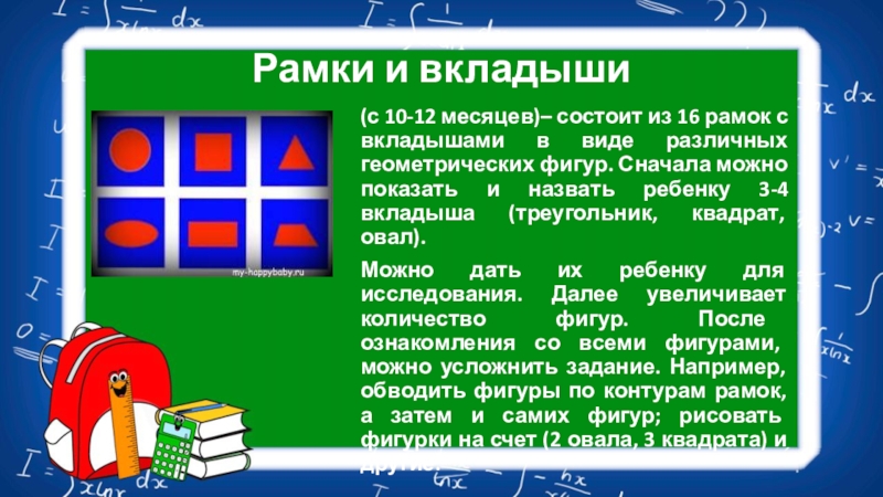 (с 10-12 месяцев)– состоит из 16 рамок с вкладышами