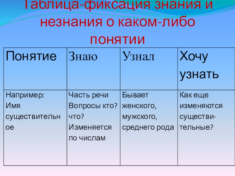 Слайд 32Таблица-фиксация знания и незнания о каком-либо понятии