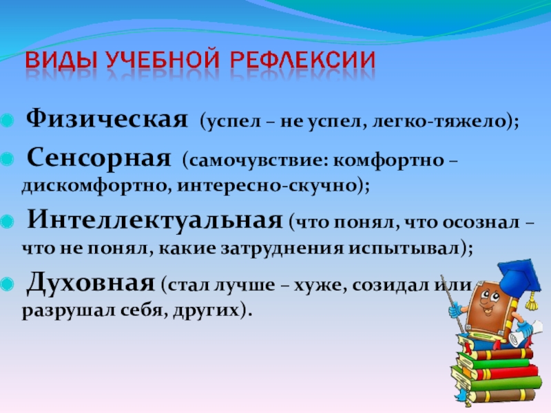 Интеллектуальная (что понял, что осознал – что не понял, какие затруднения испытывал);