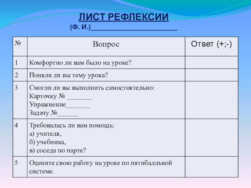 Слайд 34ЛИСТ РЕФЛЕКСИИ