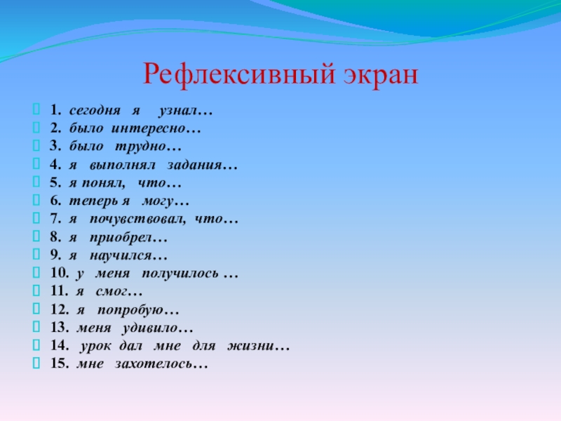 Слайд 15Рефлексия настроения и эмоционального состояния