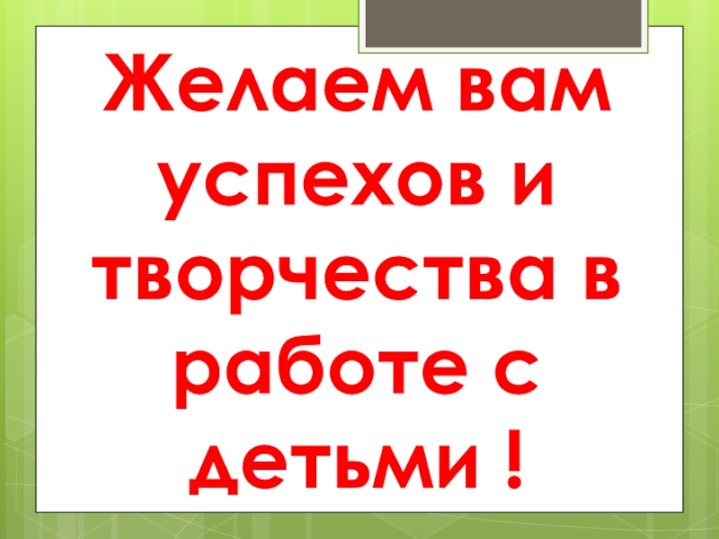 Слайд 31Желаем вам успехов и творчества в работе с детьми !