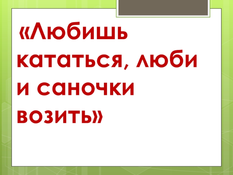 Слайд 25  «Любишь кататься, люби и саночки возить»